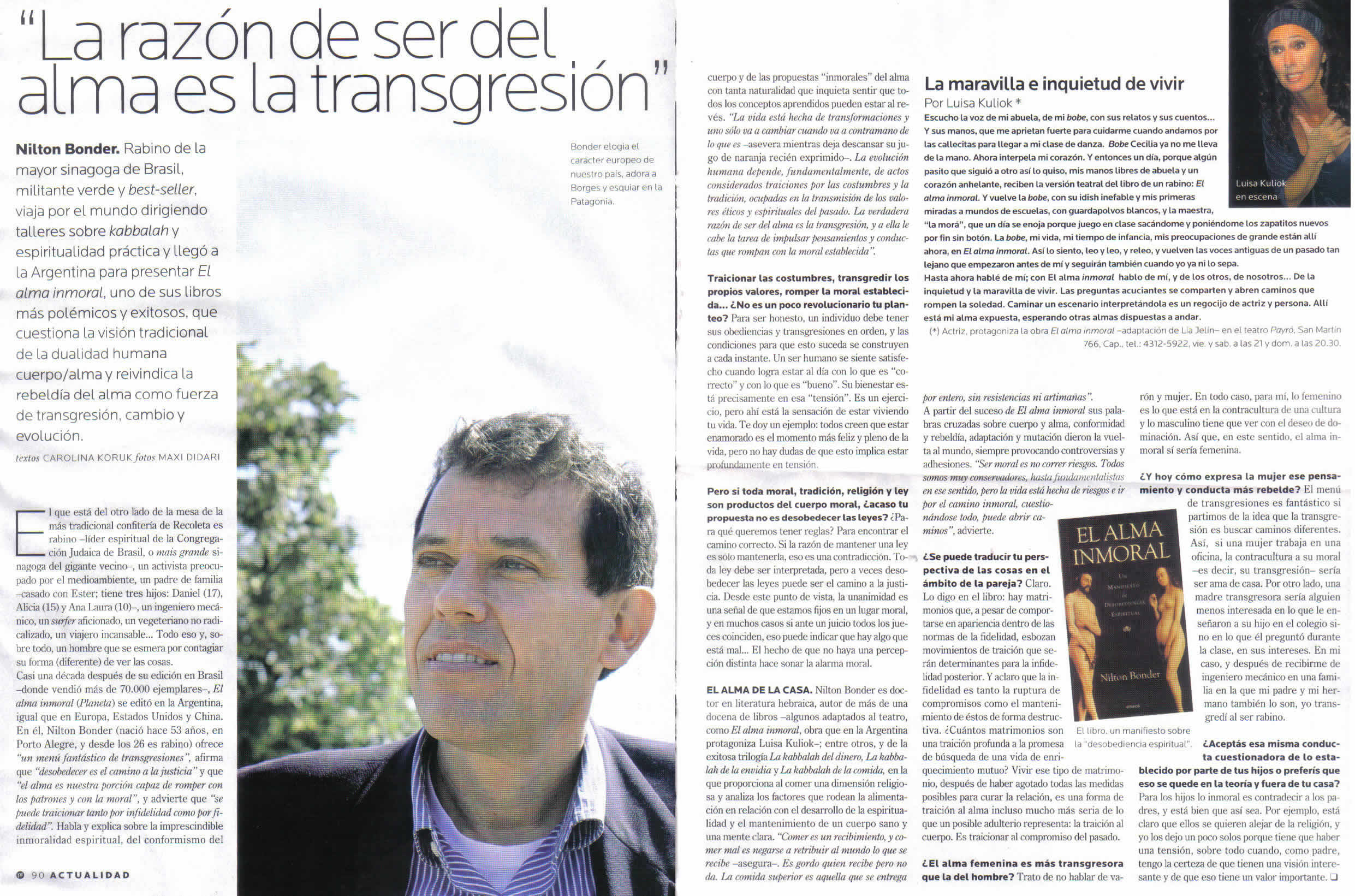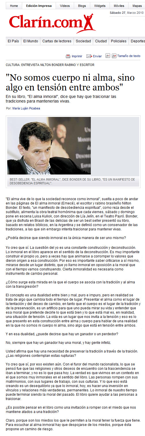 Para Nilton Bonder, el alma y sus propuestas son "inmorales",