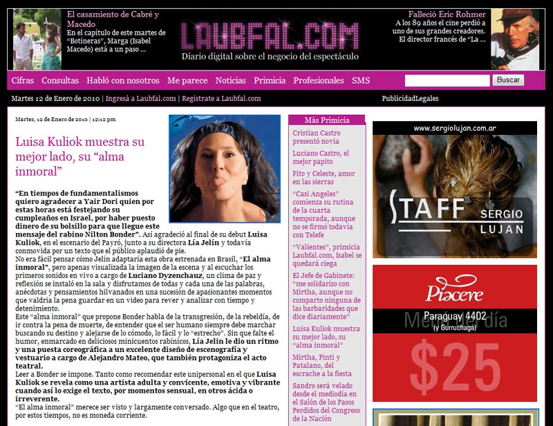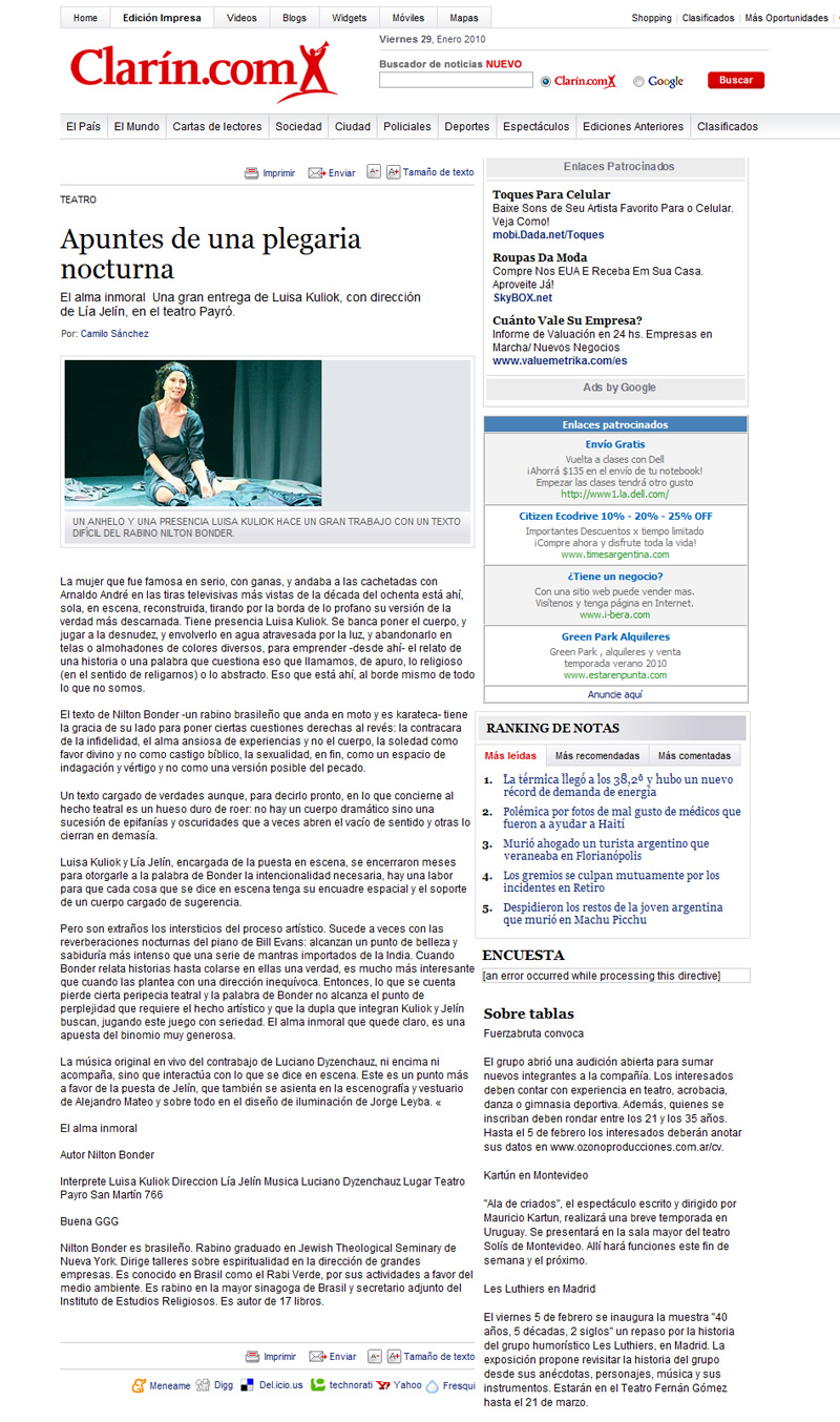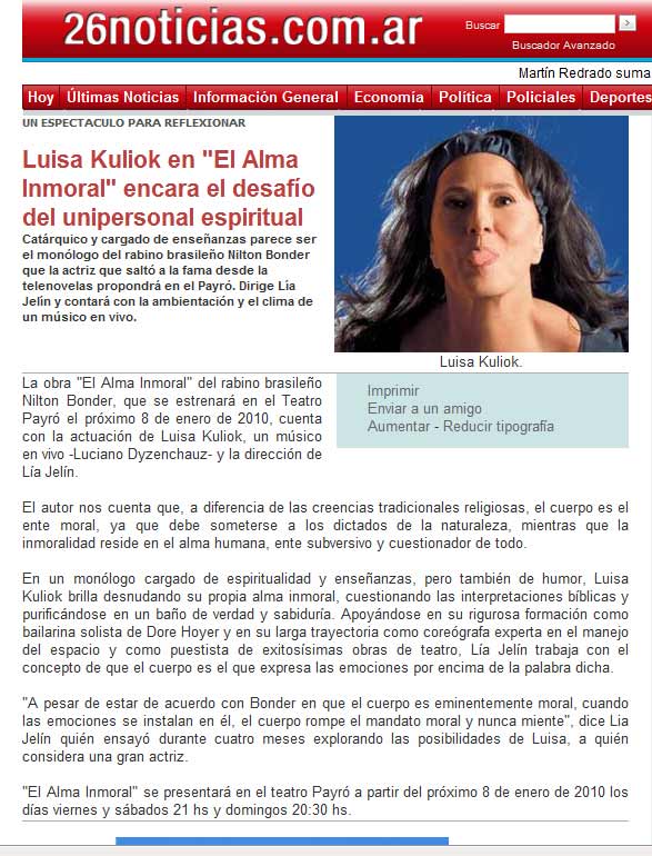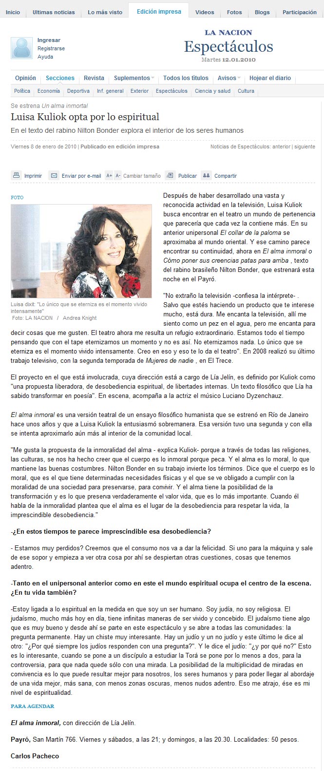 LUISA KULIOK ESTRENÓ EL ALMA INMORAL EN EL PAYRÓ, DEL RABINO BRASILENO NILTON BONDER