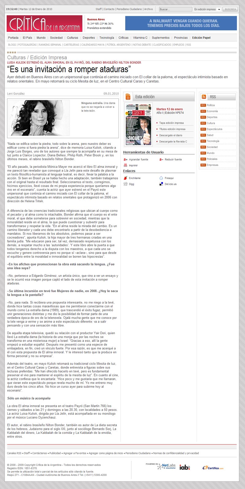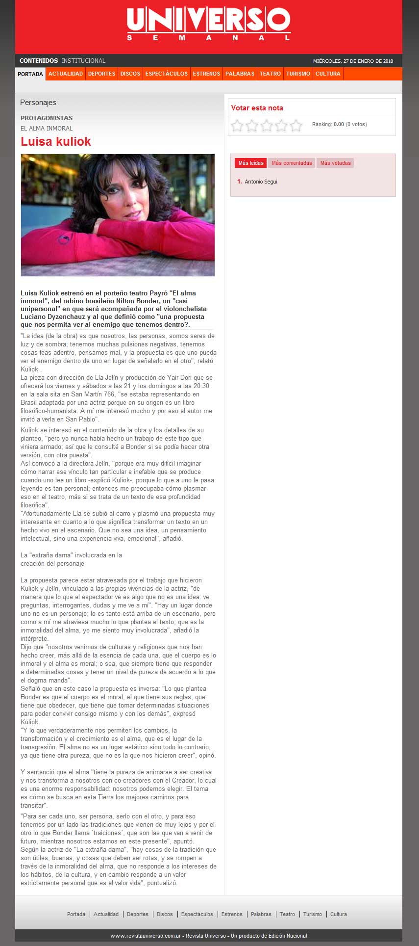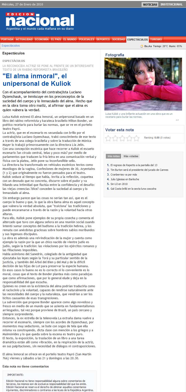 NILTON BONDER FUE A VER "EL ALMA INMORAL" DE LUISA KULIOK