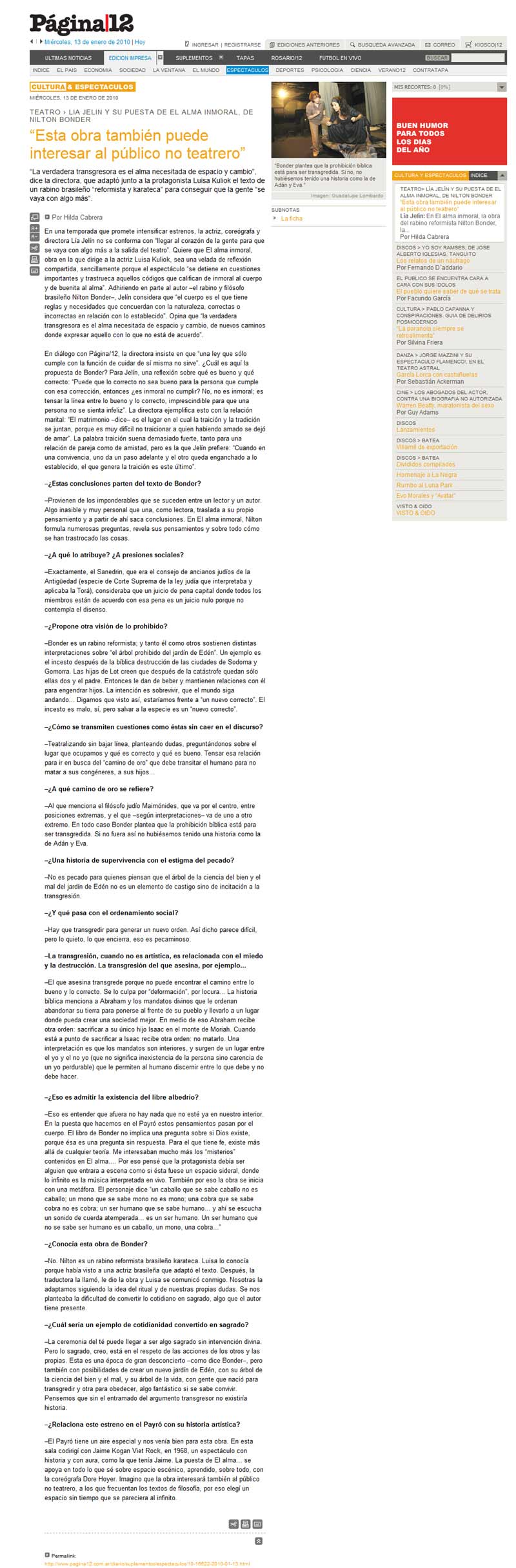 TEATRO › LIA JELIN Y SU PUESTA DE EL ALMA INMORAL, DE NILTON BONDER