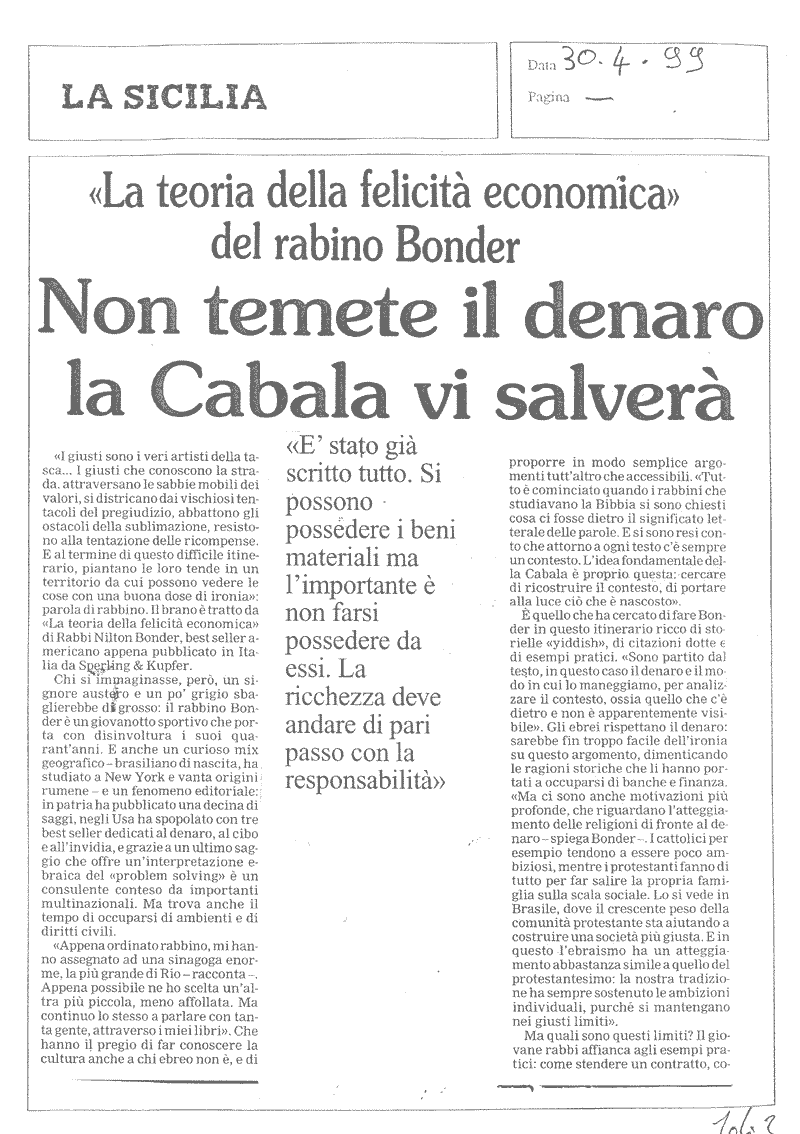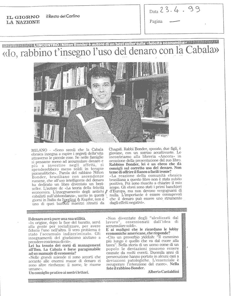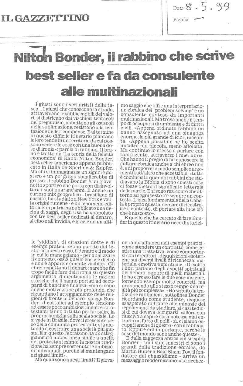 NILTON BONDER, IL RABBINO CHE SCRIVE BEST SELLER E FA DA CONSULENTE ALLE MULTINAZIONALI IL GAZZETTINO 08.05.1999